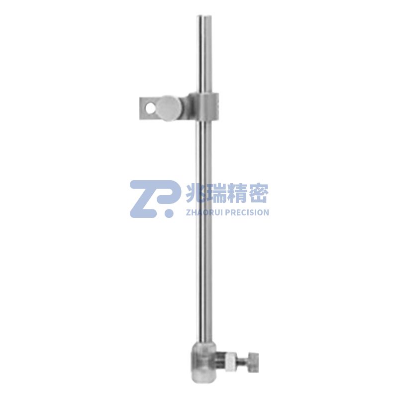 产品由夹持杆、V型夹、夹持头,夹持环组成,与对角夹持器区别在于夹持环开放式,方便取卸装夹;其余零件功能一样;夹持头三个方位雕刻V型槽有利于注射针头或电极的夹持导向作用,夹持范围:0.3mm-1.5mm。